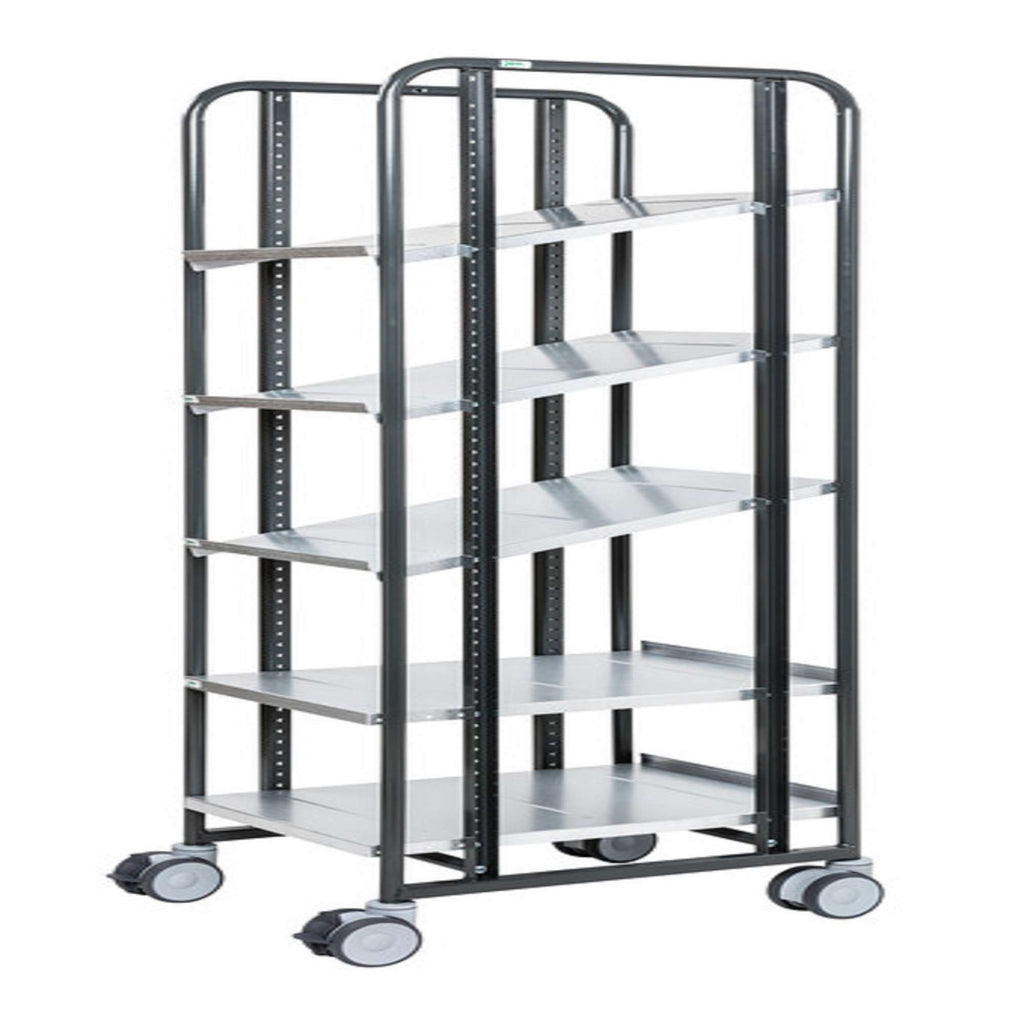 Verniciato a polvere. Ripiani regolabili. Dimensione interna: 420 x 540 x 1660 mm. 5 ripiani. Capacità ripiani: 50 kg. Ruote: 4 girevoli 2 con freno. Diametro ruote: 100 mm.