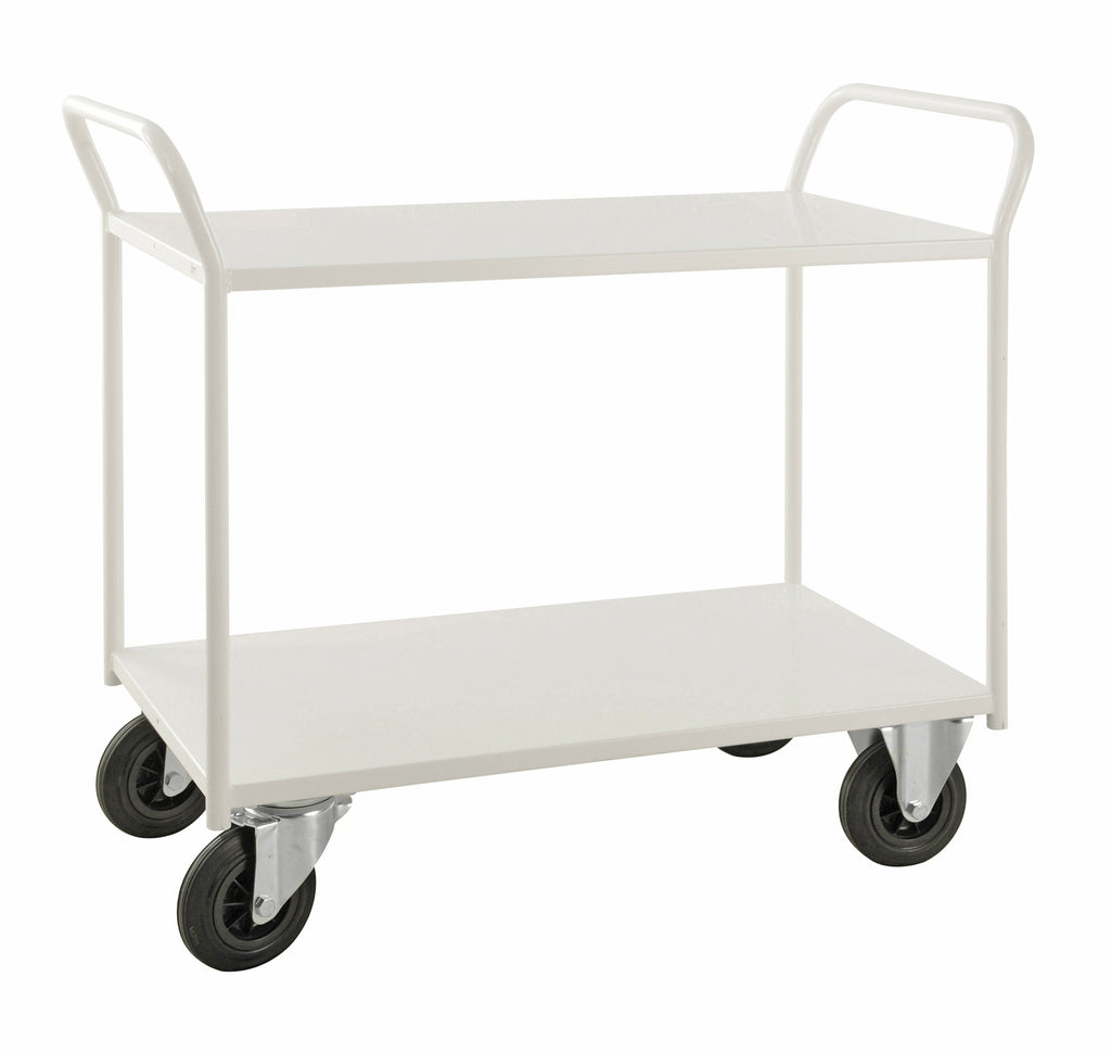 Carrello robusto completamente saldato in lamiera di metallo senza bordo, 2 ripiani. Ideale per oggetti pesanti.